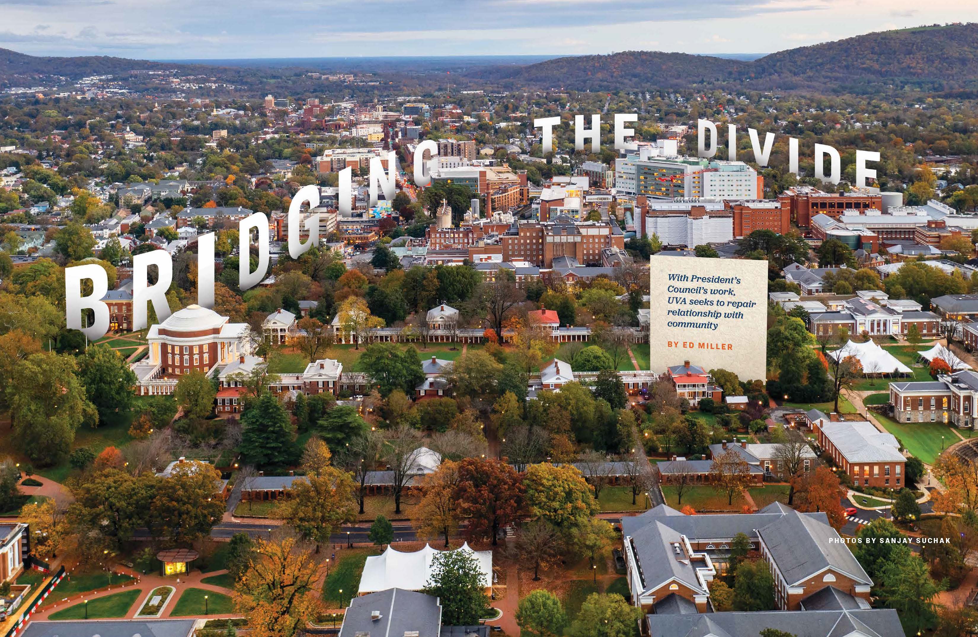 I found great joy in reading about the bridge between UVA and the Charlottesville community, especially as a former Lawn resident who has been married for 44 years to Renae Shackelford, a former resident of the Prospect public housing development, thus creating our own personal bridge. I recall a fellow UVA student telling me, back in the 1970s, that all the “townie” girls were floozies. Interesting. The townie girl, a Charlottesville High grad whom I married, went on to teach sociology, African American studies and other areas at numerous universities. She gave the greatest lecture I have heard, at Trinity Church in Charlottesville, based on our co-authored book Urban Renewal and the End of Black Culture in Charlottesville, Virginia: An Oral History of Vinegar Hill. After excitedly reading President Ryan’s brave column and Ed Miller’s breathtaking cover article, one of my concerns is that the opportunities for Black people now will be mainly service-oriented, which in most ways is better than nothing, but in other ways is located on a continuum that has its roots in slavery and mid- to late-20th century service-oriented work that has substantially kept Charlottesville and UVA going since the days of our founder, Thomas Jefferson.