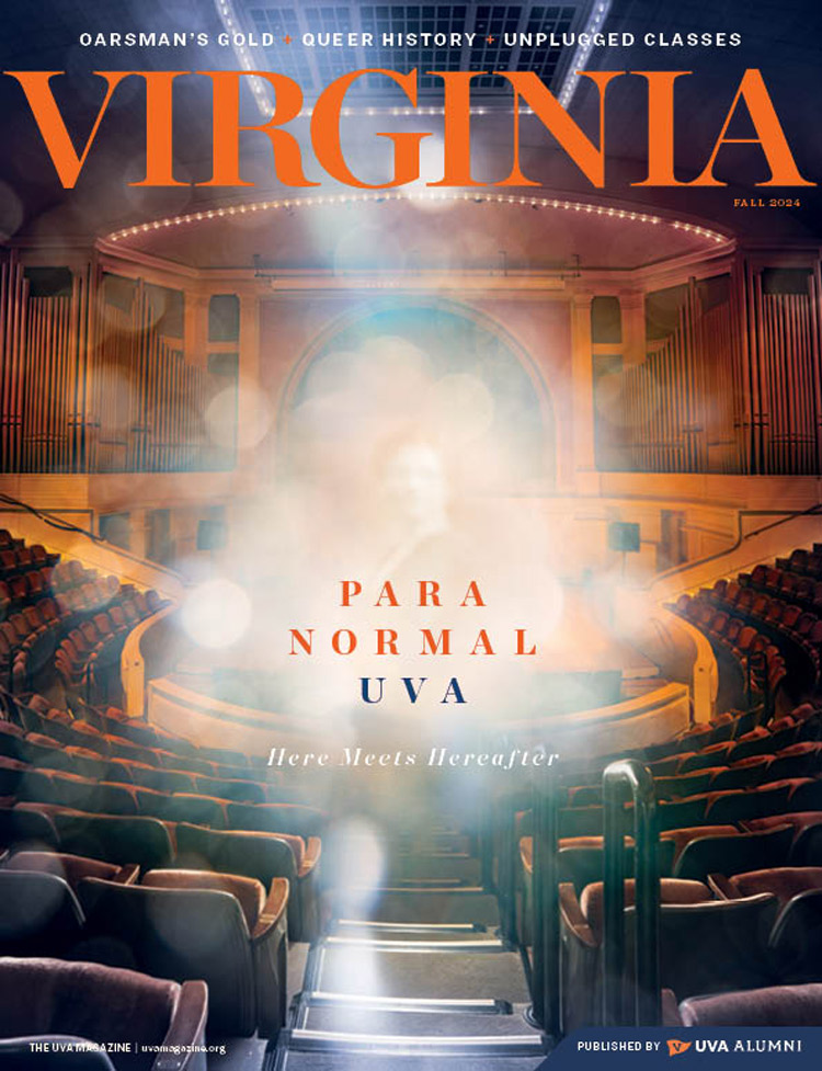 I enjoyed your story about ghosts and mysterious apparitions on Grounds. It reminded me of my two UFO sightings. I first saw the slowly rotating equilateral triangle of bright white lights slowly moving over the highway when I was en route to Neil Young’s “Rust Never Sleeps” concert at William & Mary in October 1978. The second time I was driving past old Scott Stadium and arriving at an intersection known as Fry’s Spring, where the object hovered above me and a friend in my Chevy Vega and then sped off without a sound. I was sufficiently freaked to remark, “Please, no, I don’t want to go,” because I had already seen it once before. I called the local airport and asked about any unusual activity, of which, of course, there had been none—or none that anybody would admit. Over the years, nobody has ever been able to give me a satisfactory explanation of this phenomenon. Many years later, a fraternity brother who saw how excited I was that evening reported overhearing people at a party discussing the “Fry’s Spring UFO.” Perhaps one of your readers knows what it was I saw? If so, it would no longer be an unidentified flying object.