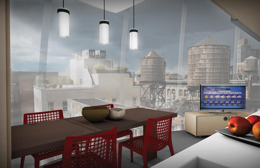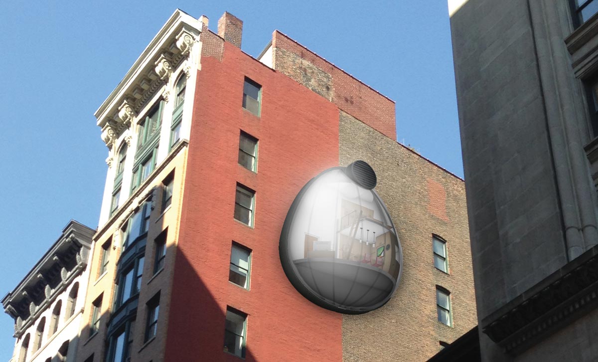 Perry (Arch class of ’11), who is senior designer at Prophet Brand Strategy in New York City, often sees buildings of different heights situated next to each other as he walks around the city. The exposed wall of the taller building is rarely used, Perry says. “It’s used for billboard signs, if anything. So I thought, ‘Why not try to occupy that space with something more useful?’”