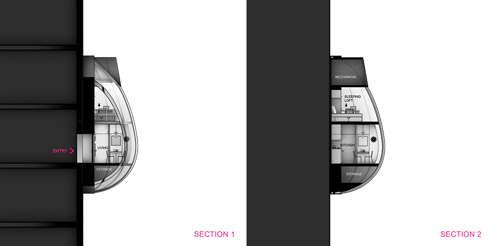 Perry’s design could be used to expand existing apartments, allowing families to make space for children or aging relatives, or they could be stand-alone dwellings that attach to the sides of nonresidential buildings. In either case, the attachment points would be minimally invasive, leaving few “scars” on the host structures if the units were removed.