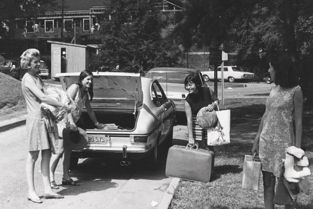 - Having successfully challenged in federal court the University’s delayed lifting of restrictions, Virginia “Ginger” Scott of Charlottesville is the first woman enrolled as a first-year student in the College of Arts & Sciences.