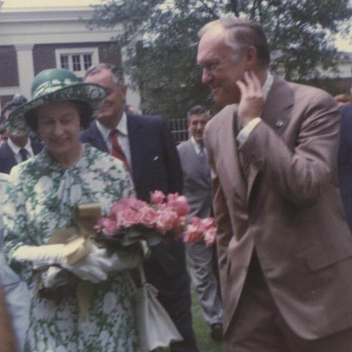 Queen Elizabeth II with UVA President HerefordAlbert and Shirley Small Special Collections Library - July 1976