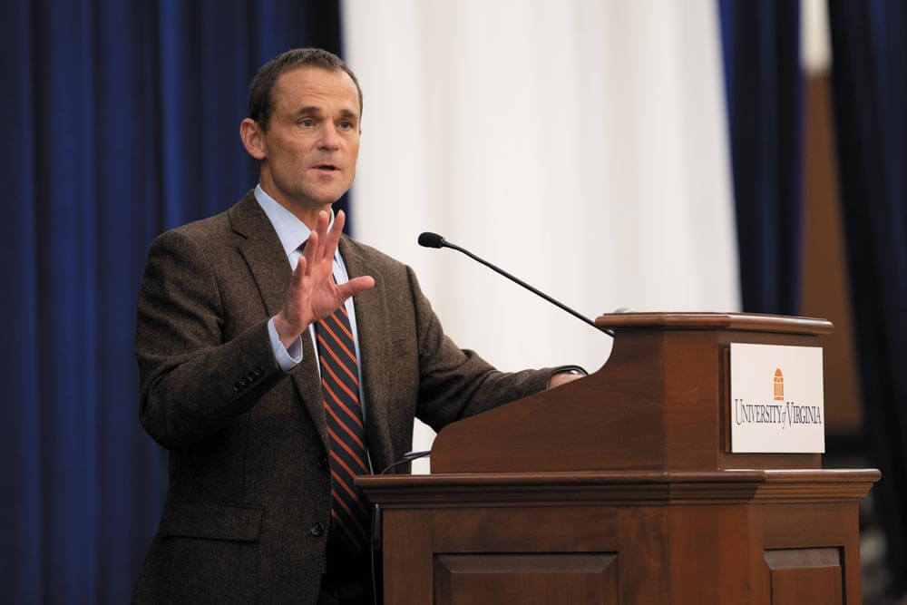 - The night before a deadly “Unite the Right” demonstration in Charlottesville, national white supremacists march on Grounds with torches, brawling with student counterprotesters surrounding the Jefferson statue on the Rotunda’s north terrace.