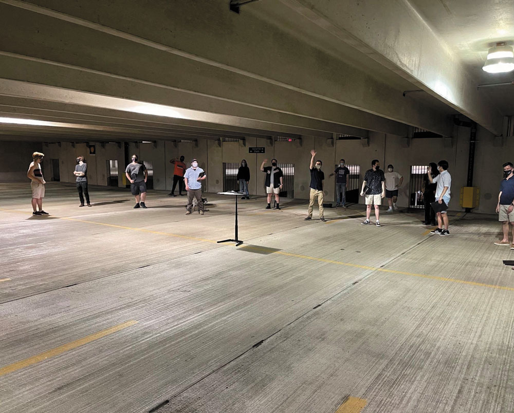 By spring 2021, with vaccines available and restrictions on outdoor gatherings loosened, the club found a rehearsal home in an unlikely space: the parking garage at John Paul Jones Arena.