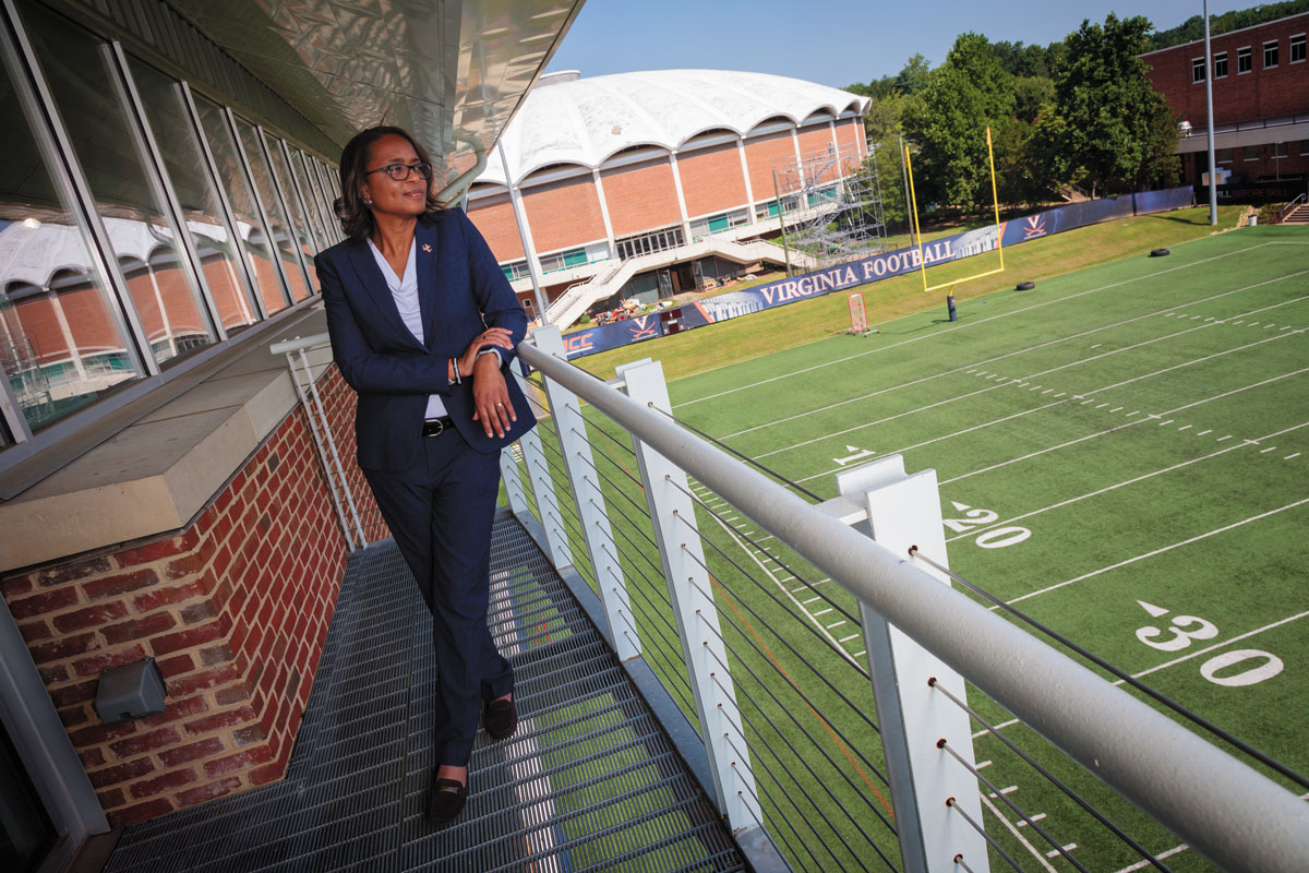 “The thing that I’ve noticed—it makes me smile—is that the alums, the supporters, the donors, the board members, they love the University of Virginia,” she says. “It’s easy at some places to have large segments of your fan base that may love only a particular team, but what I’ve found here at Virginia is that everyone I talk to, even if they didn’t graduate from the University of Virginia, they love the University. They love the whole place, and we want to make sure they’re part of this overall excellence.”