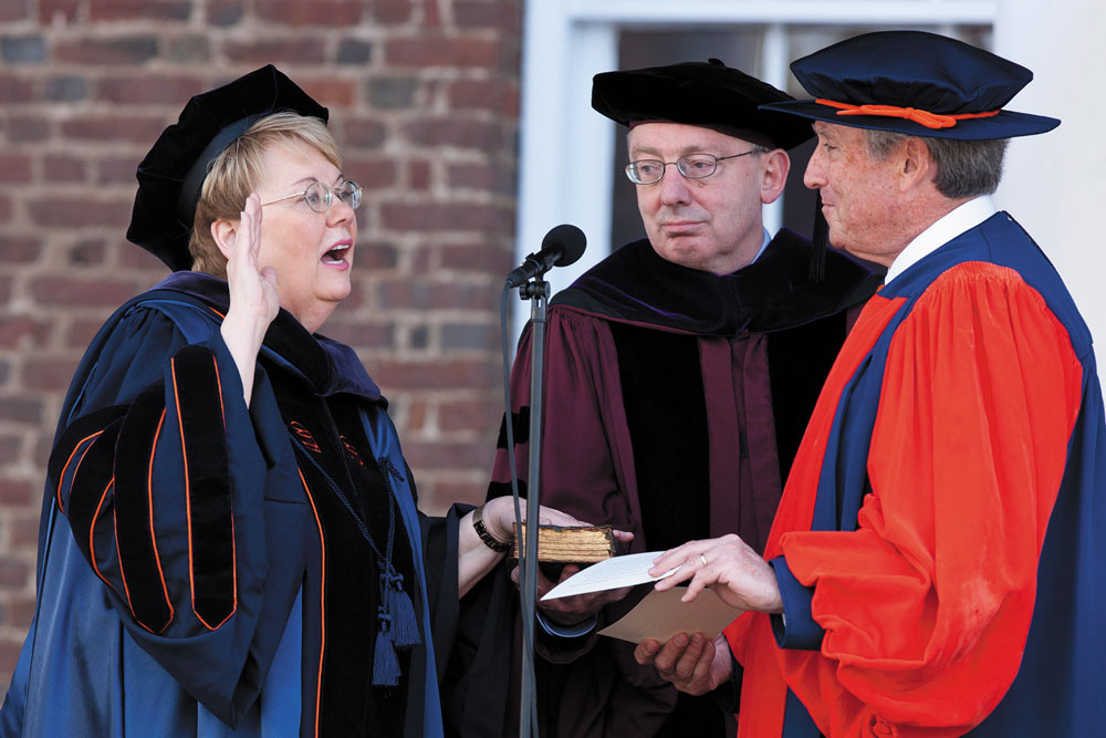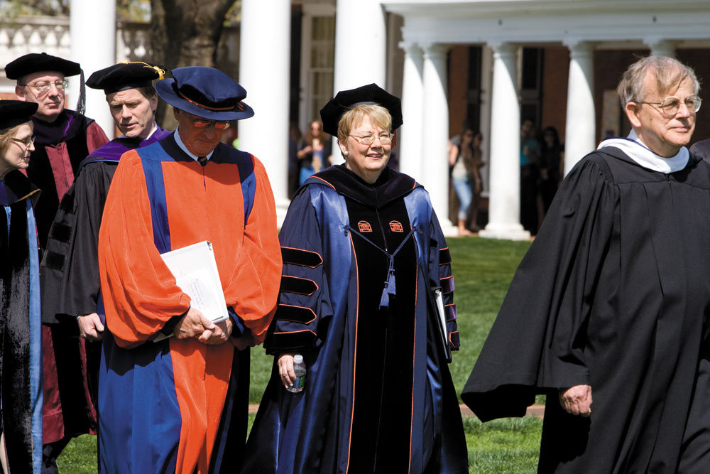 Frank M. “Rusty” Conner III (Col class of ’78, Law class of ’81), the UVA rector, offers: “Success really is dependent upon, for the most part, day-to-day execution, putting one foot in front of the next. She’s had the perseverance and the energy to do that. She has done that on so many different fronts at the University. It’s not glamorous. It doesn’t catch the headlines, but that is what builds the foundation for future greatness.”