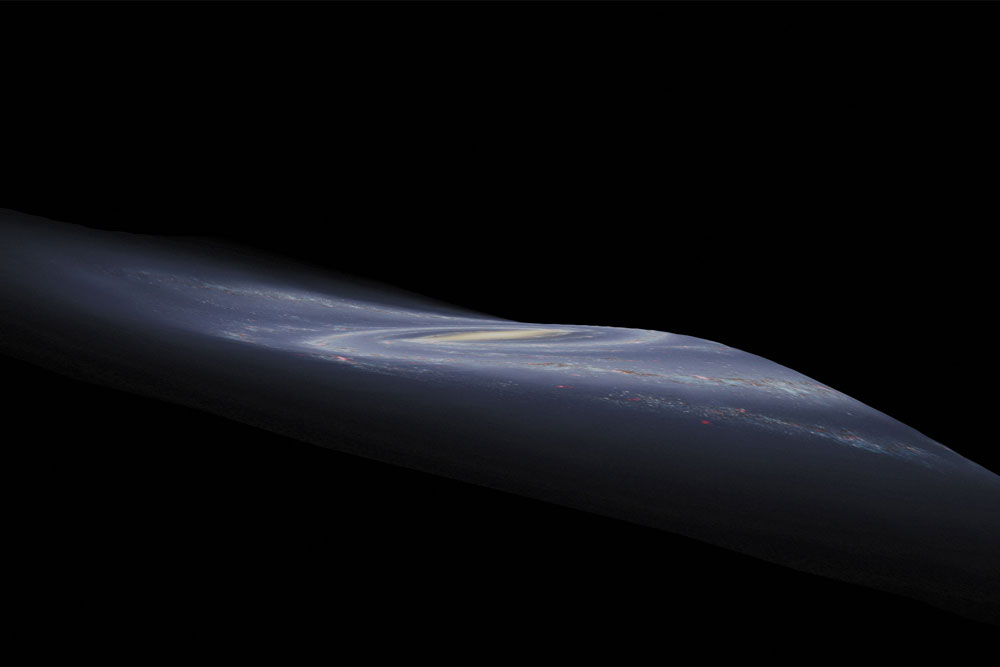 Researchers have known about the wave for a while, but thanks to new data from some advanced observation instruments, “We were able to map out where the stars are and how they are moving with incredible precision,” says Cheng, who served as lead author on the report published on the team’s findings in The Astrophysical Journal. What caused the warp in the first place is uncertain; one theory is that it might have been caused by the gravitational pull from a smaller galaxy passing nearby billions of years ago. Interestingly, however, Cheng notes that their findings also indicate that the warp is rotating at a different speed from the galaxy itself. Previous researchers have suggested the possibility, but, says Cheng, “for the first time we managed to reveal this with very high accuracy.”
