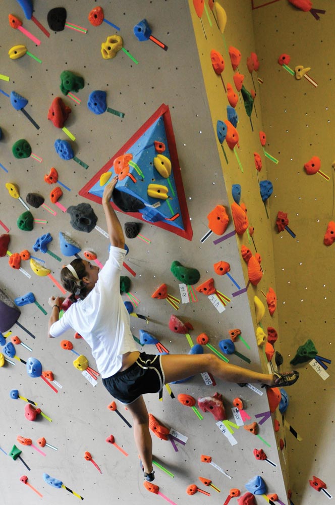 But the wall is more than rocks for jocks, says John McCall, assistant director of the center. Students come here to get a workout, sure, but the wall gives their minds just as much exercise.