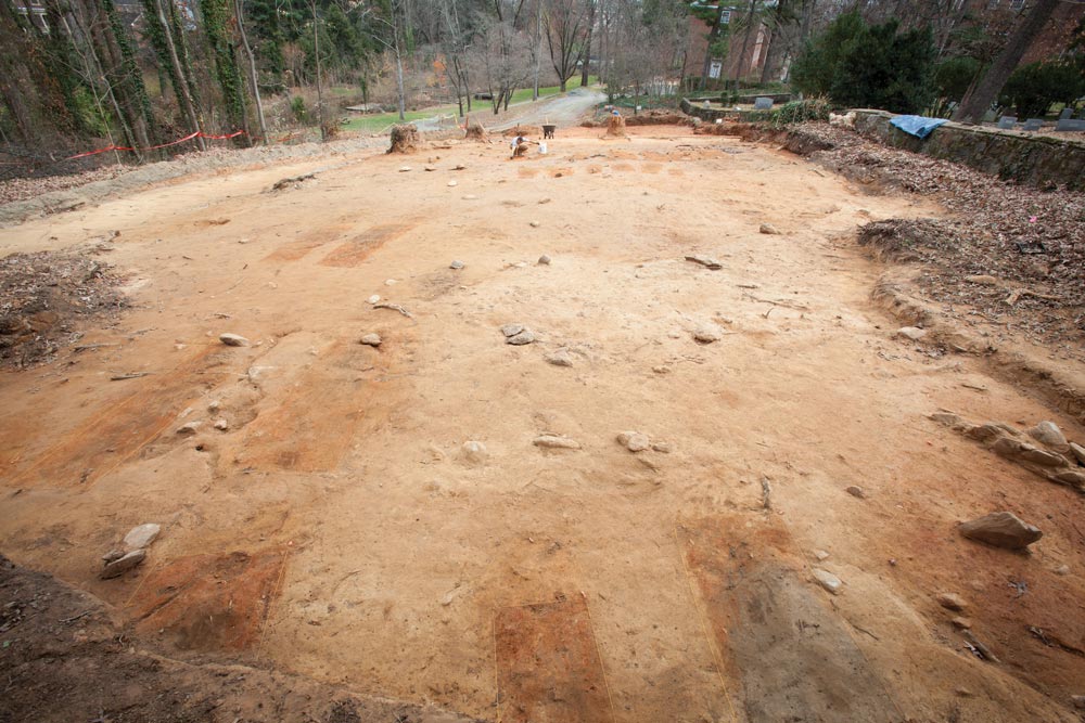 On Oct. 22, 2012, a University of Virginia landscaping crew began clearing topsoil from land just north of the University Cemetery. Founded in 1828, the cemetery provides a final resting place for University presidents, faculty members, prominent alumni and even a Civil War general. Now a planned expansion of the cemetery had the crew, under the supervision of local archaeologists, taking a peek under a thick, two-foot-deep layer of dirt that covered a former plant nursery. An earlier survey had turned up nothing, but this time archaeologists spotted a subtle change in the soil’s color and texture, forming what became, after a bit more digging, an unmistakable pattern.