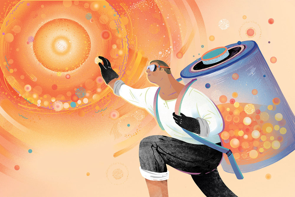 How do we feed the energy demands of the future? UVA chemistry department researchers Sen Zhang and T. Brent Gunnoe and their teams have taken us closer to reaping the potential of our best renewable energy resource: the sun. As Gunnoe explains, one significant challenge to implementing solar power on a large scale is finding a way to store the captured energy. Using sunlight to make hydrogen fuel by splitting water into its component parts—hydrogen and oxygen—is one of the most promising possibilities. But the current technology for making hydrogen fuel “is just terribly inadequate,” Gunnoe says. Among other problems, the common catalyst for the process involves rare precious metals.