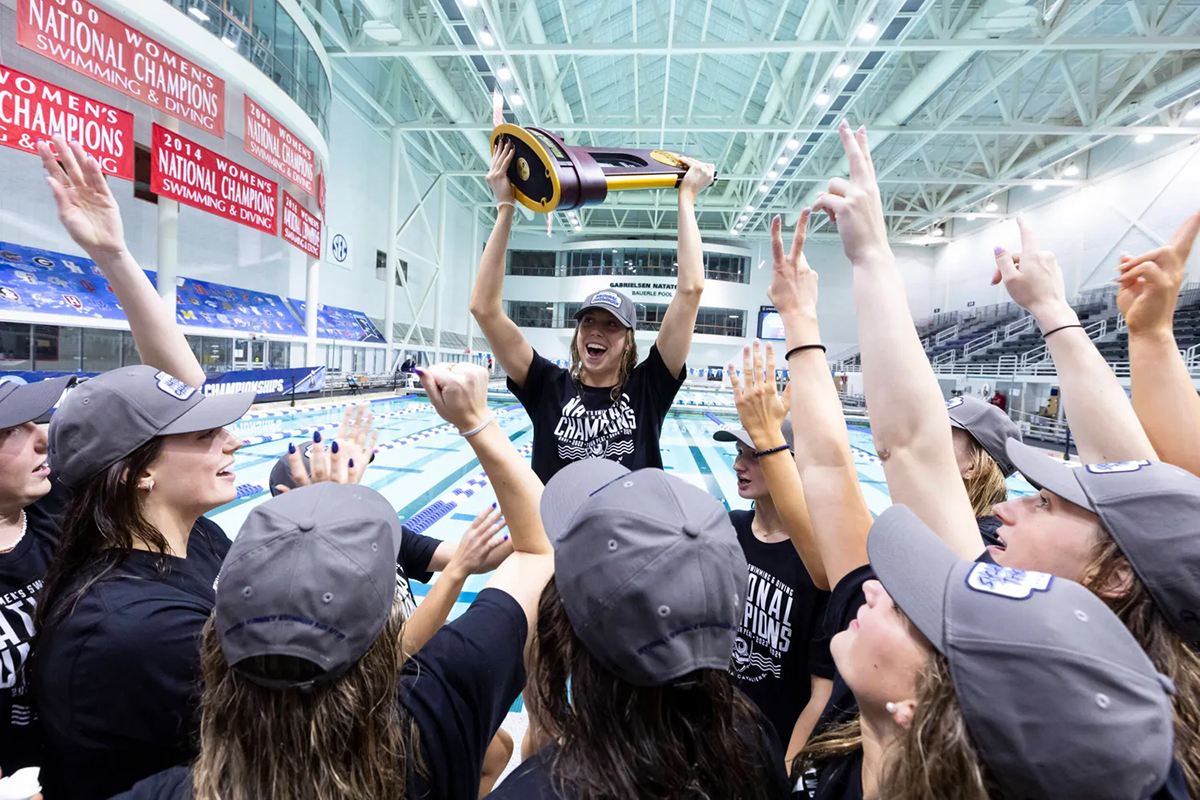 Athens, GA—While most Virginia fans spent another March quietly contemplating a more prominent sport’s if-onlys, those here inside the Gabrielsen Natatorium could barely hear themselves think. Never mind the smartwatch decibel alerts, they brought the noise as the UVA women’s swimming and diving team brought home its fourth-consecutive NCAA championship.