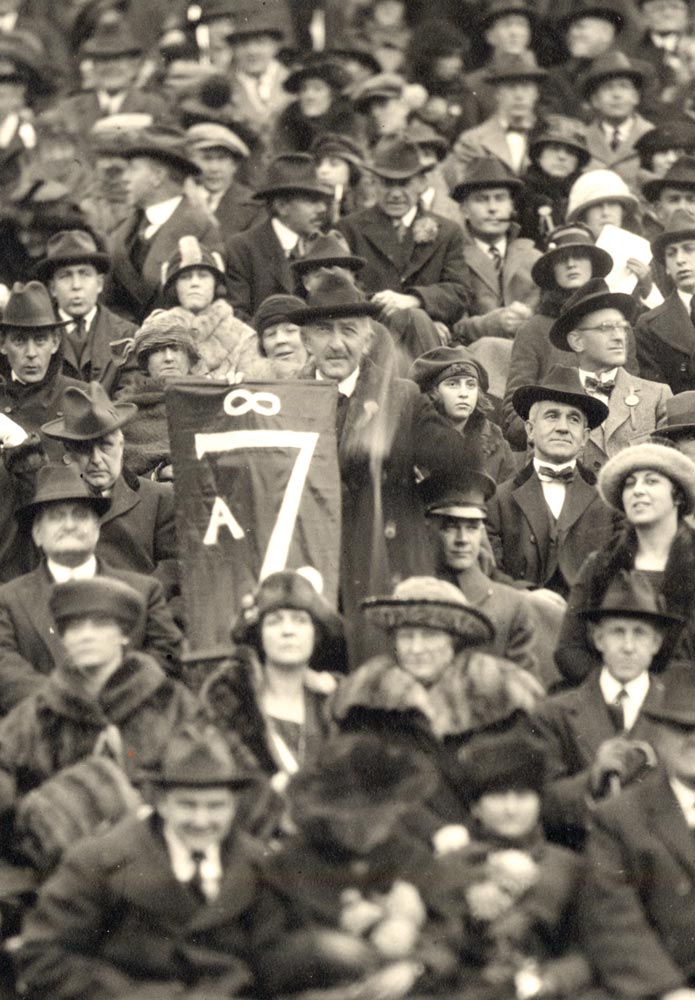 In 1950, a stonemason received a request to place the Seven Society’s emblem on the hill at Scott Stadium. On the day the work was completed, he found the payment of $1,000.77 in his lunchbox. Five years later, President Colgate Darden was instructed to remove the bottom stone from the symbol during halftime of a football game. Underneath the stone he found $77.77, designated for the installation of a drinking fountain next to the Madison Bowl intramural athletics field.