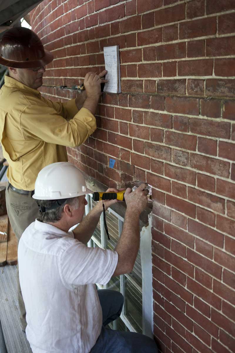 The entire time, four laser beam units positioned around the Rotunda and aimed at 130 targets on the walls, measured the building’s position every four minutes. Seven vibration sensors augmented the laser system and monitored construction-related shaking of the building. If the Rotunda moved even a minuscule amount, contractors were notified, work stopped immediately and crews huddled to find out what happened and, if necessary, what they had to do to restabilize the building.
