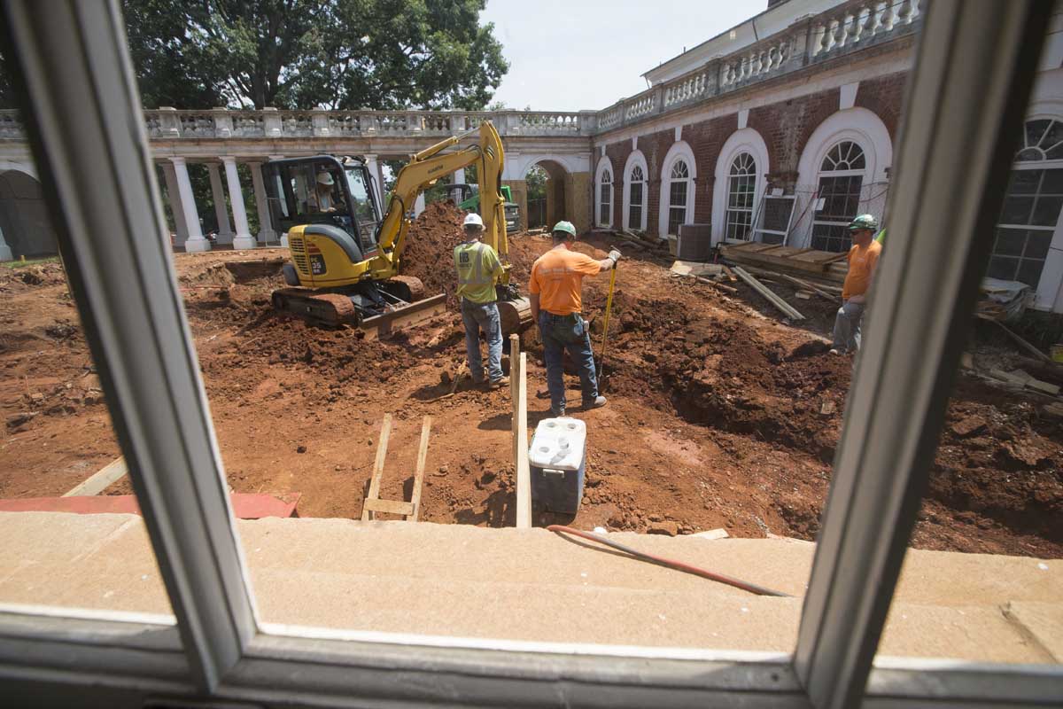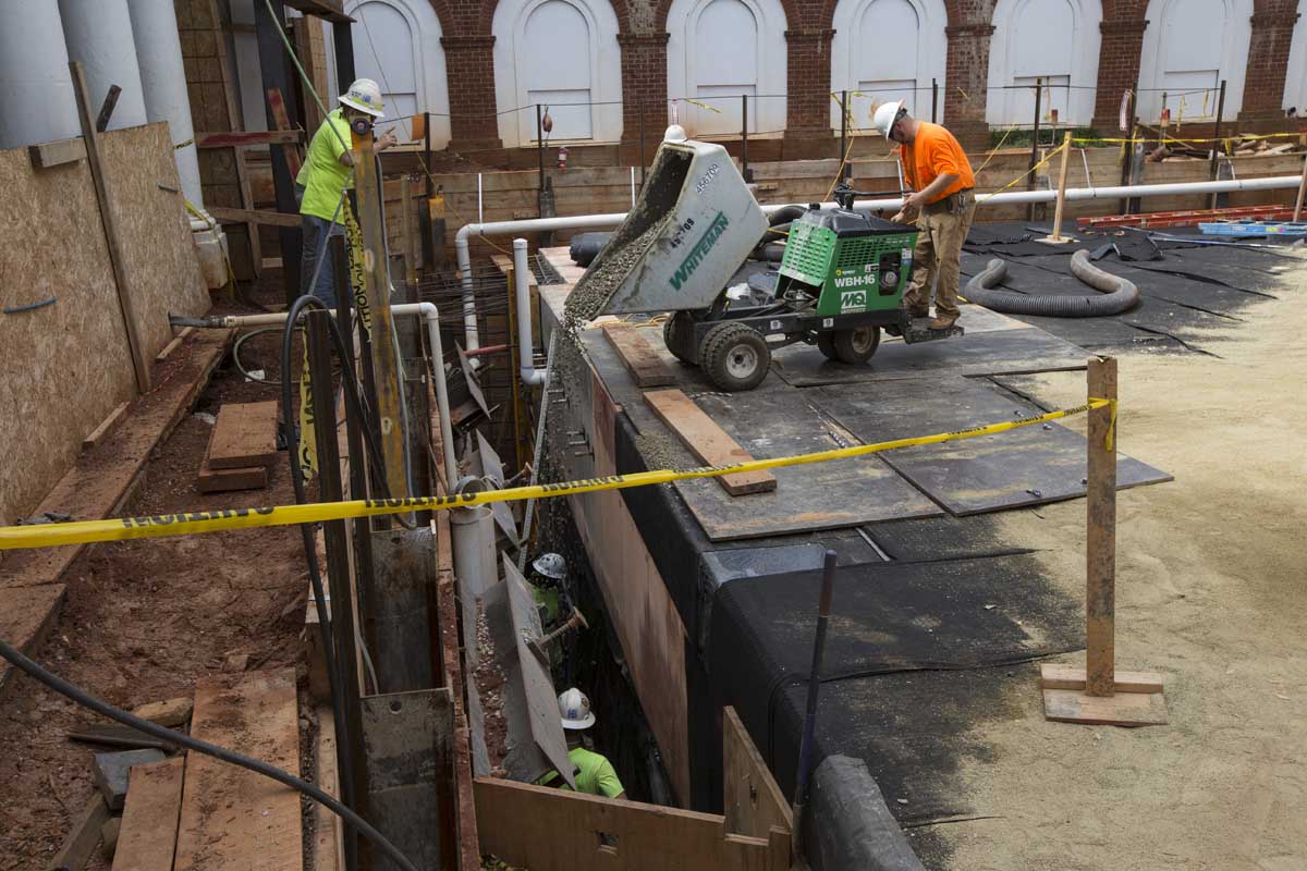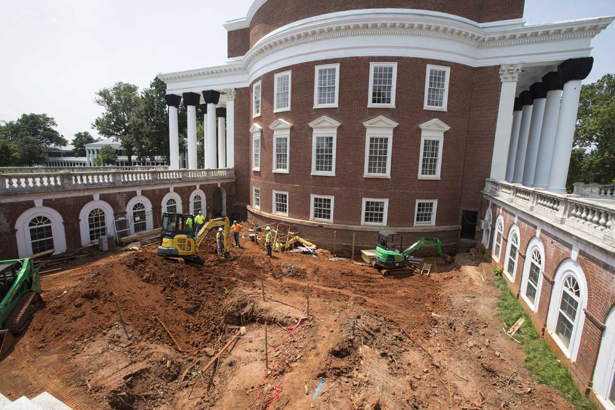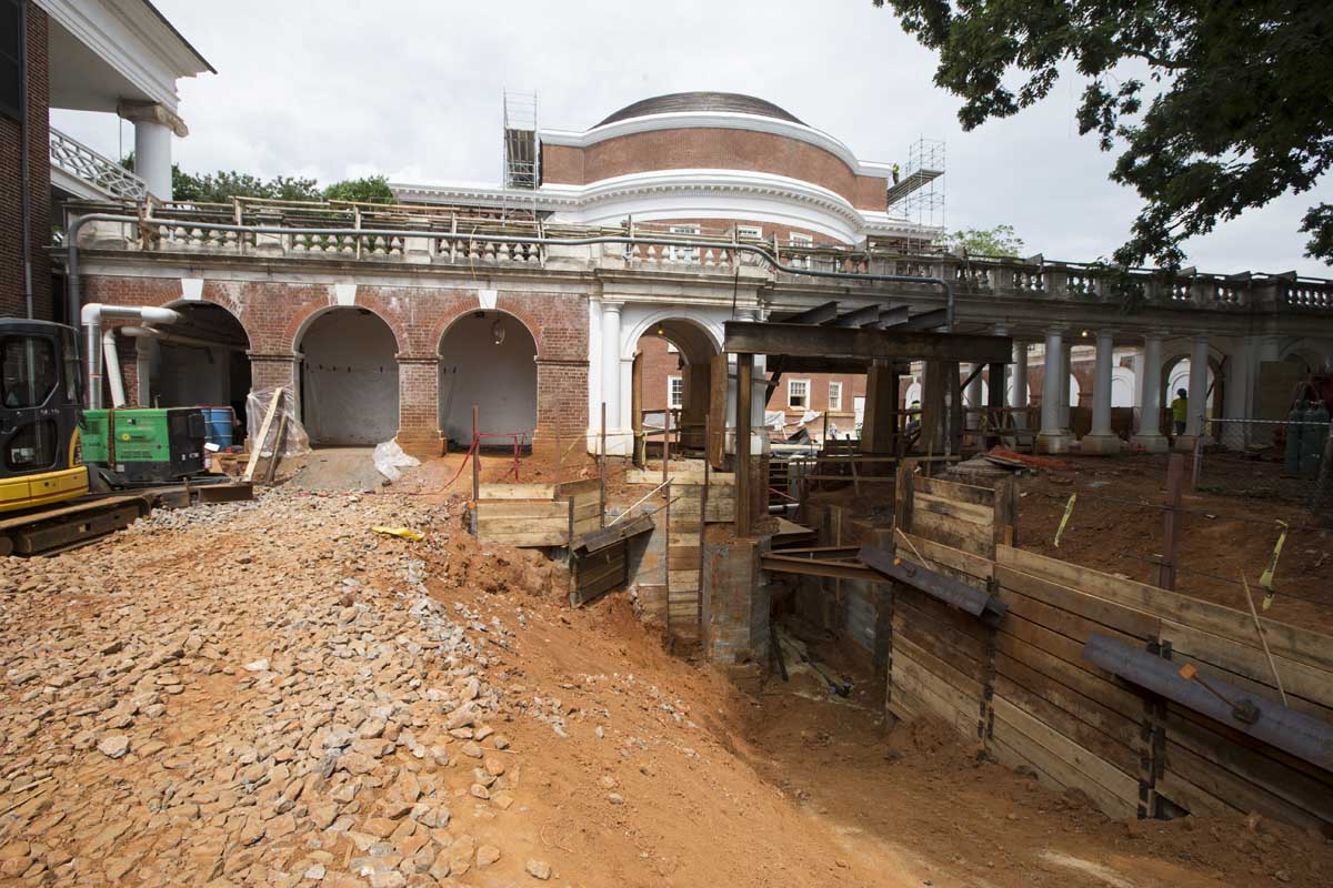 Repairing the Rotunda’s foundation and underpinning was a huge undertaking that occupied the first six months of the second phase of the restoration. The Rotunda was built directly on the ground, with no foundation, so the excavation had to be done in the old-fashioned way: with shovels and muscle.