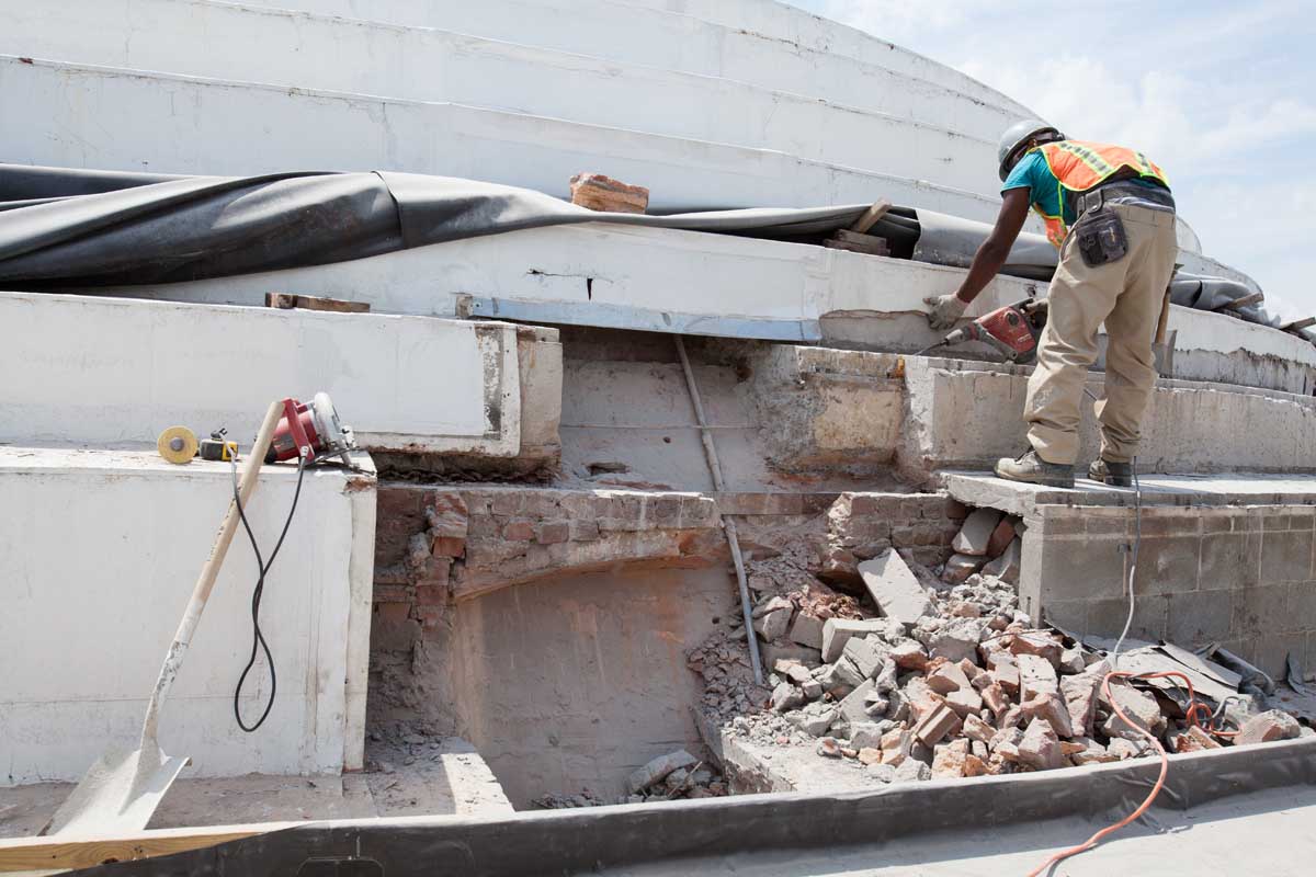 They also made repairs to the Gustavino tile system and to rusted tension rings that “help contain the thrust of the dome so that the walls don’t explode,” Hogg says.